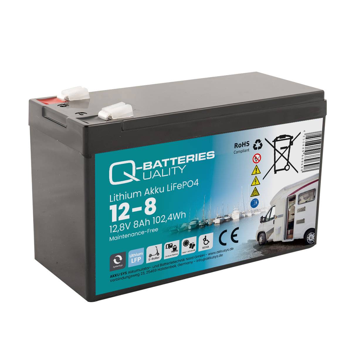 Die Q-Batteries Lithium Akkumulatoren mit Lithium-Eisen-Phosphat-Technologie (LiFePO4) sind extrem zyklenfeste und vielseitig einsetzbare Batterien. Im Vergleich zu anderen Blei-Akkutypen sind Lithium-Ionen Akkus deutlich leichter und haben eine längere Lebensdauer. Auch unter extremen Bedingungen oder bei Fehlanwendung besteht keine Explosionsgefahr, da die innovative Zelltechnologie eine hohe Betriebssicherheit, lange Lagerfähigkeit und große Temperaturbereiche bietet. Ab einer Kapazität von 75 Ah verfügen die Batterien über eine Bluetooth Schnittstelle und können per Android App in Echtzeit auf dem Handy oder Tablet überwacht werden. Ob Ladezustand, Temperaturentwicklung oder Lade-/Entladeleistung – die App bietet seinen Nutzern einen detaillierten Einblick in den Status ihrer Batterie.